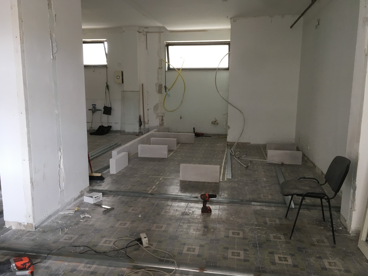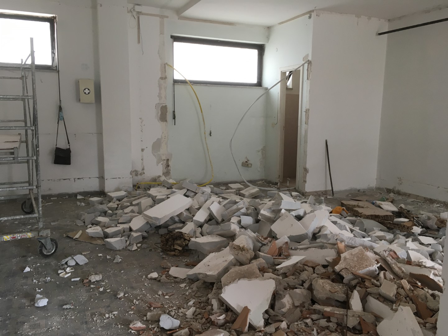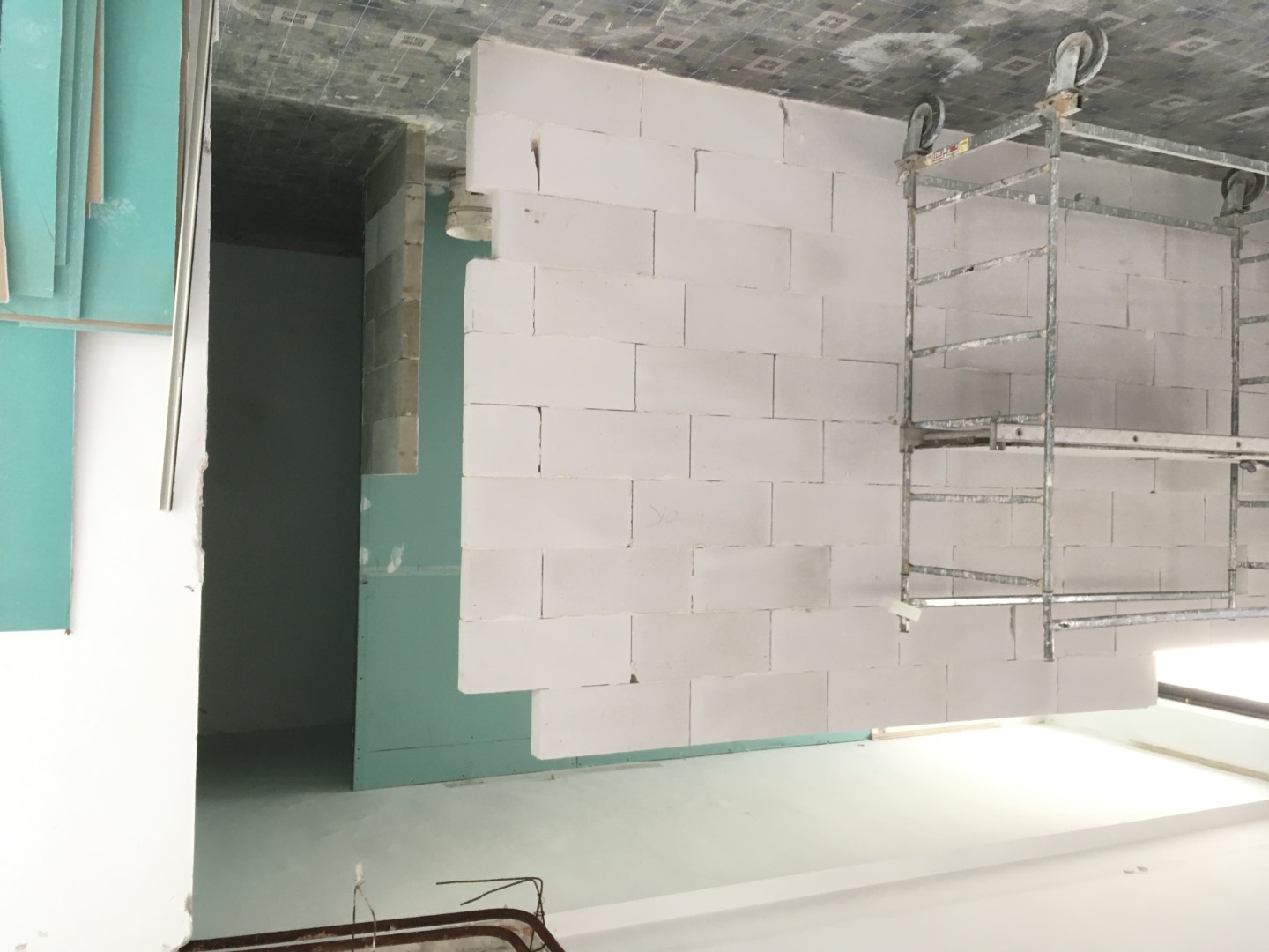 partion was made of siporex, a lightweight, porous building material