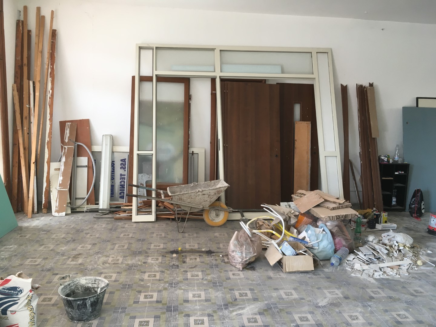 Interior cardboard doors and main wood door removed
