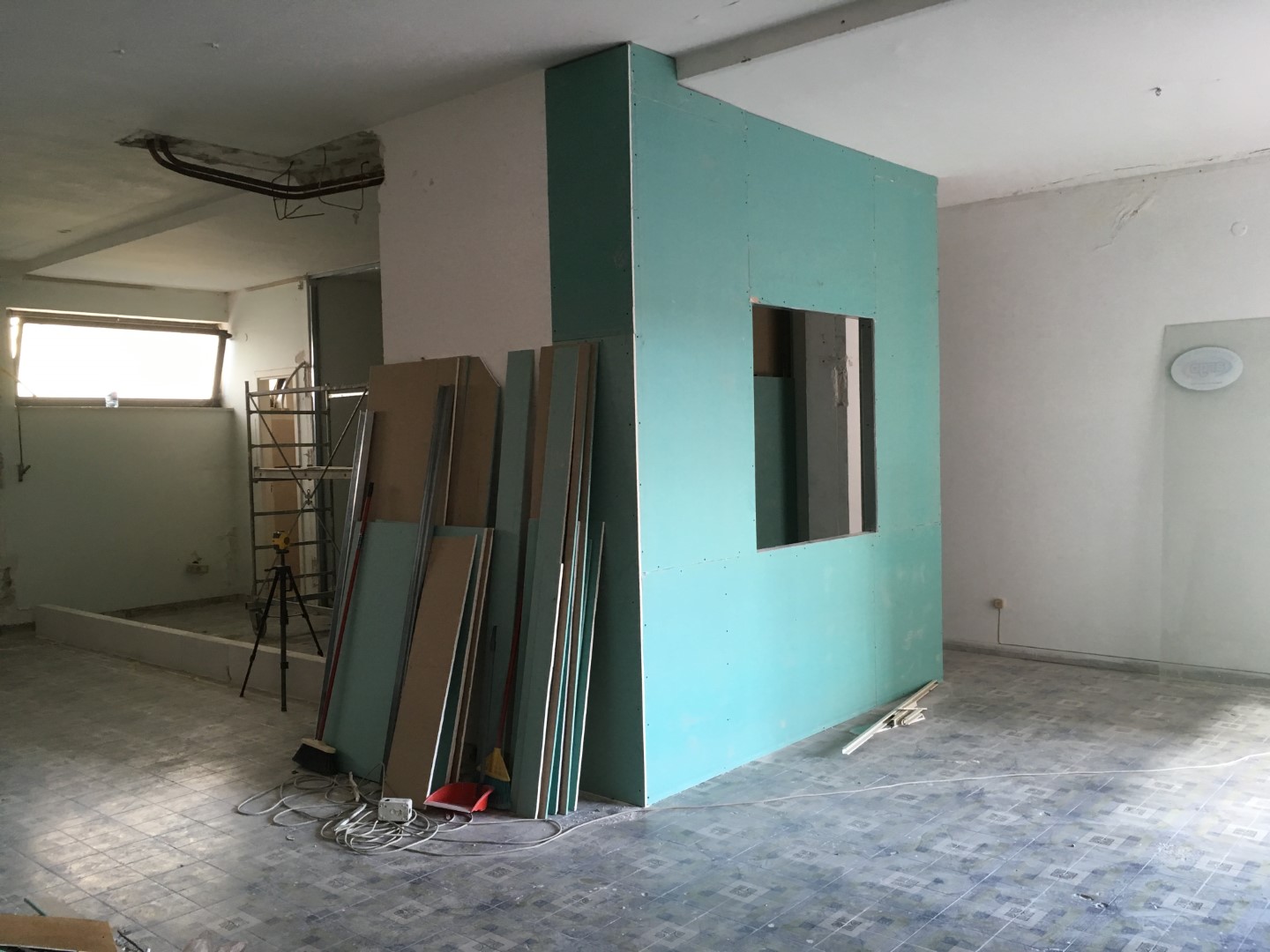 Part of the original interior partion was made of drywall