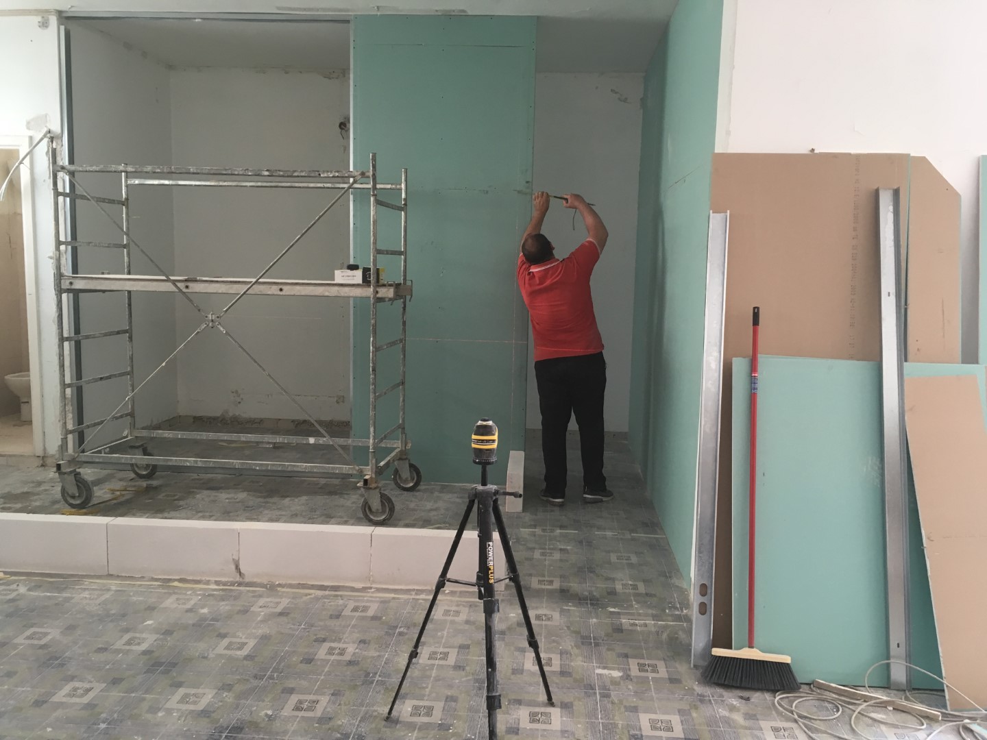 To achieve fast development, we decided to skip the traditional brick laying for building the walls. Instead the mansory recomended that we use a mixture of siporex and drywall specifically designed for humid environment. As these are not weight-bearing walls, this method achieves faster speed and lower cost to realize the plan.