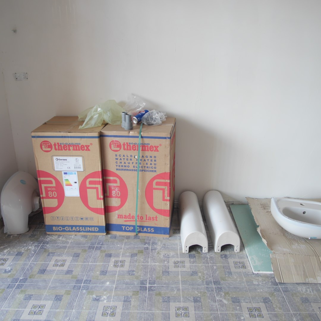 All the sanitary products were removed from the original bathroom, and the plumber created a new design for the junctions to allow more sources to discharge into the waste water pipe.