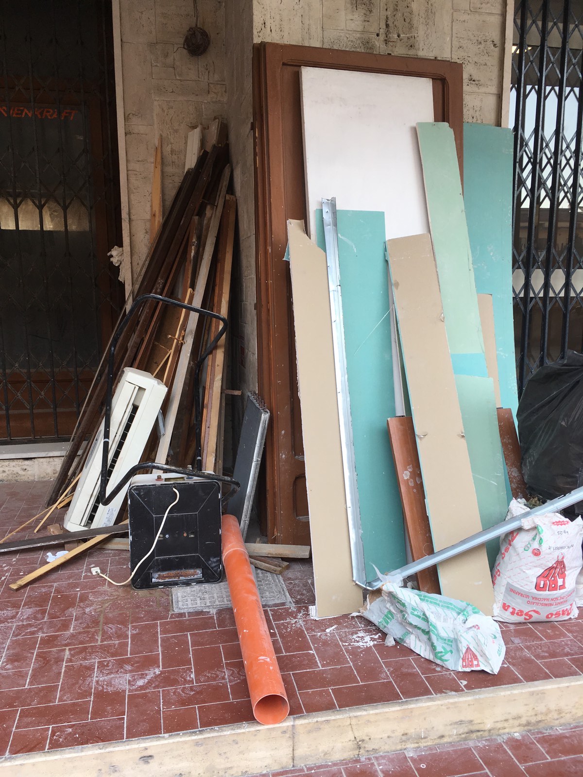Every time some work is done, a bunch of trash is generated, but toward the end we have fewer to deal with. Some are going to be recycled and others disposed properly.